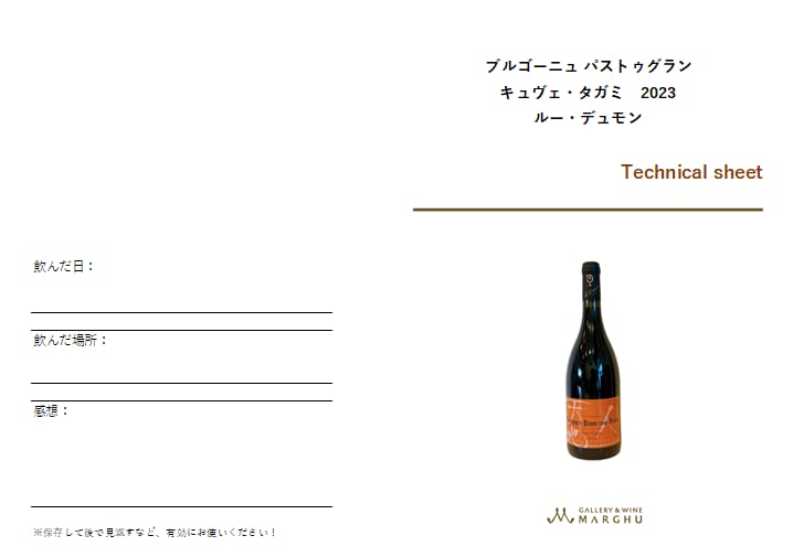 マーグではご購入頂いたワインをより美味しく楽しんで頂きたいと全てにテクニカルシートをお付けしております。
