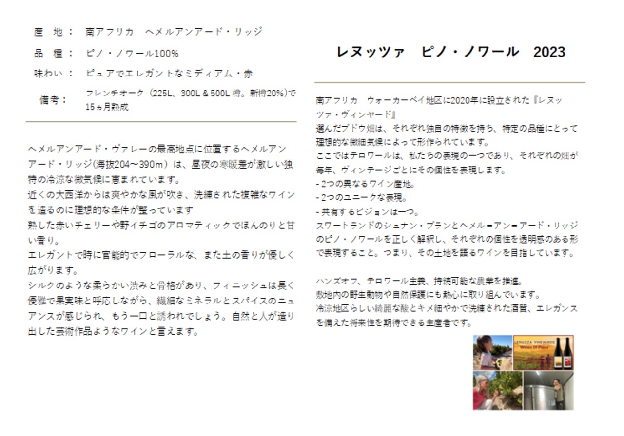 南アフリカ ウォーカーベイ地区に2020年に設立された『レヌッツァ・ヴィンヤード』