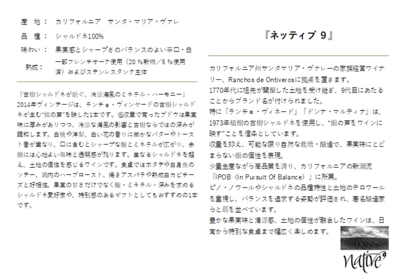 この『ネイティブ9 ドンナ・マルティナ シャルドネ2014』は、ひと味違う“物語”を持つ1本です。