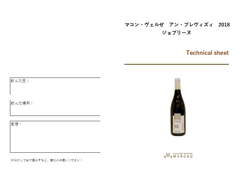 マーグではご購入頂いたワインをより美味しく楽しんで頂きたいと全てにテクニカルシートをお付けしております。
