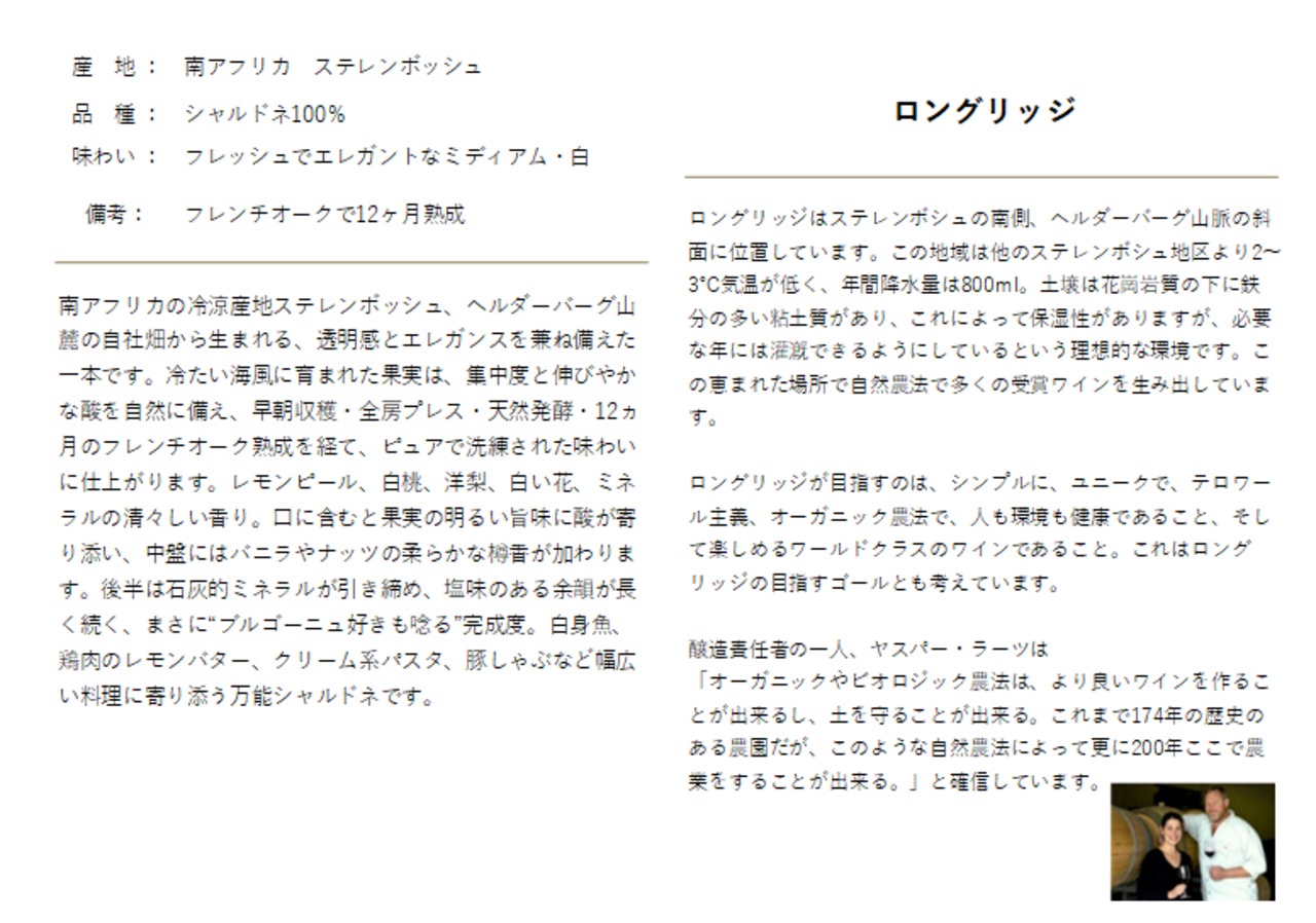 マーグではご購入頂いたワインをより美味しく楽しんで頂きたいと全てにテクニカルシートをお付けしております。