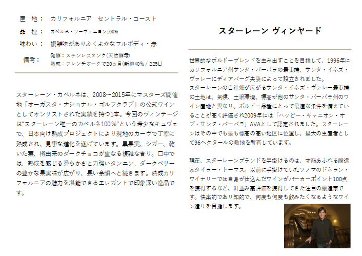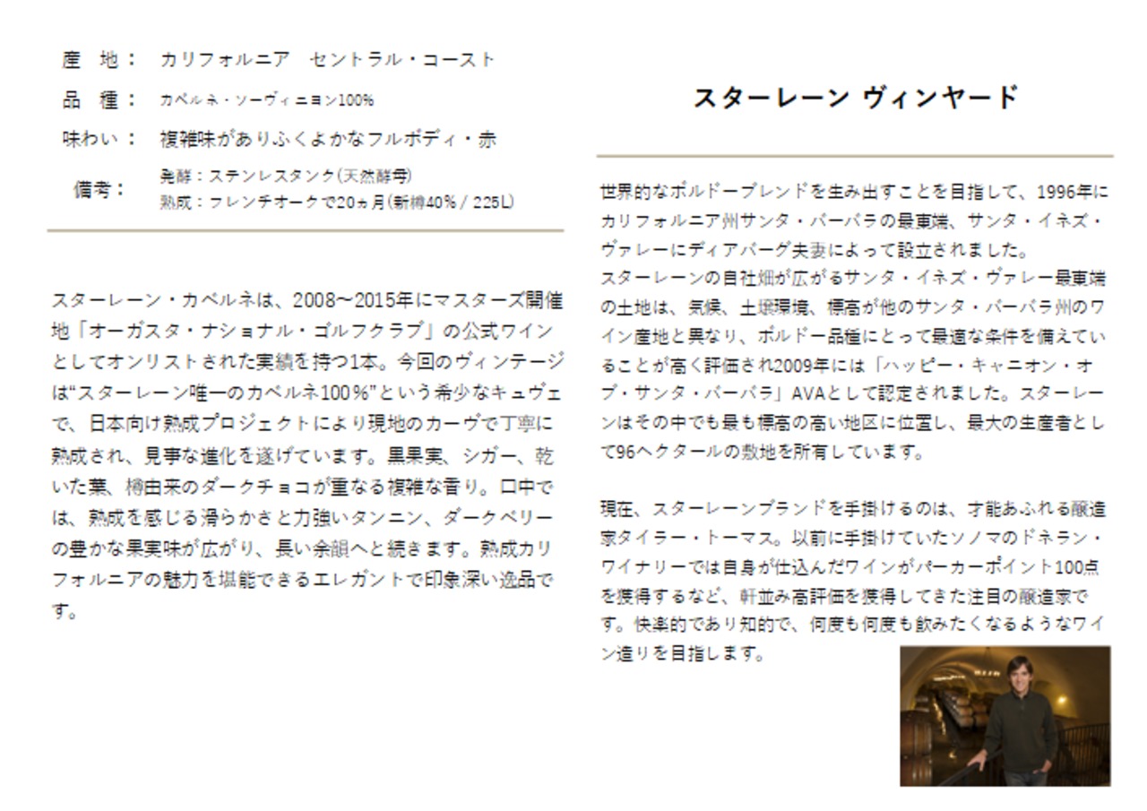 『スターレーンで唯一カベルネ100%となった希少なヴィンテージ!』