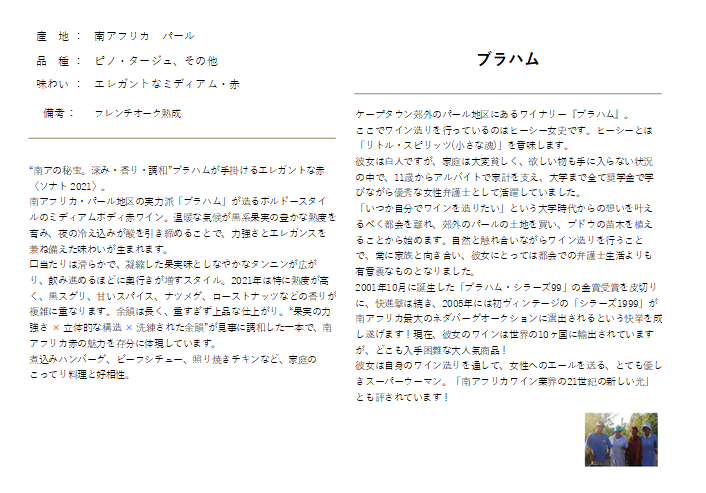 「たとえ貧しくても、女性でも努力すれば夢は実現出来ます。あきらめずに自分の夢に向かって努力してほしいということを伝えたいです。」と自身のワイン造りを通して、女性へのエールを送る、とても優しきスーパーウーマン。「南アフリカワイン業界の21世紀の新しい光」とも評されています!