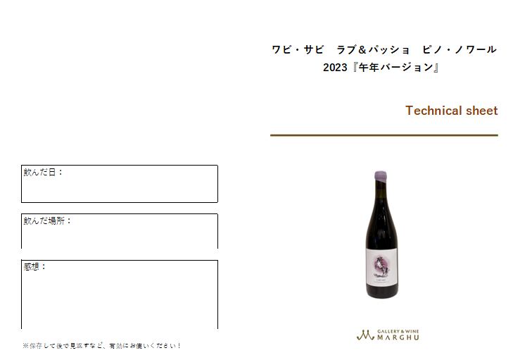 ワビ・サビ ラブ&パッショ ピノ・ノワール 2023『午年バージョン』