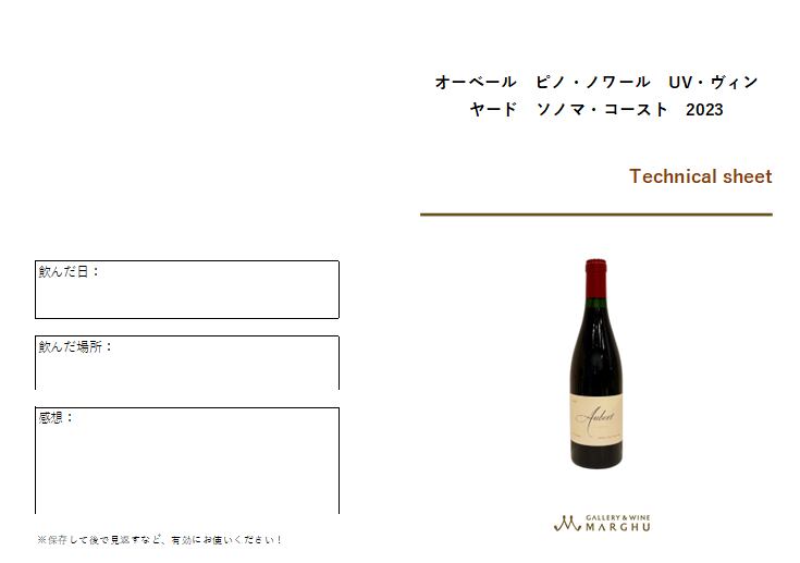 オーベール ピノ・ノワール UV・ヴィンヤード ソノマ・コースト 2023