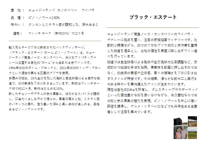 「ブラック・エステート ホーム ピノ・ノワール」は、