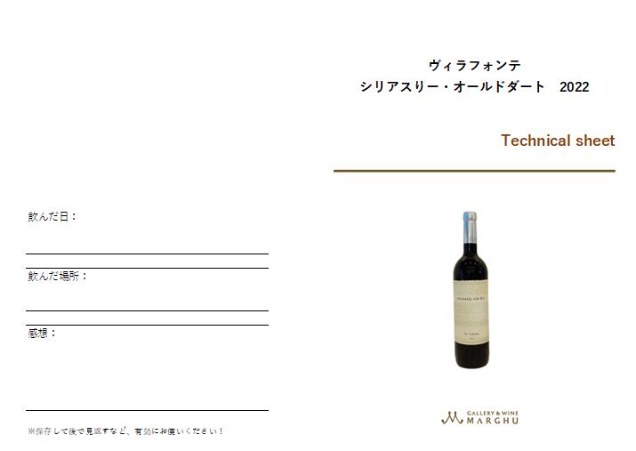 マーグではご購入頂いたワインをより美味しく楽しんで頂きたいと全てにテクニカルシートをお付けしております。