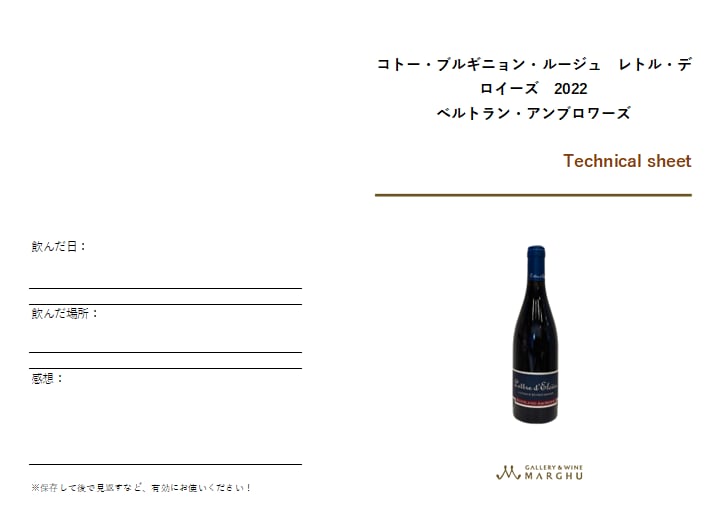 マーグではご購入頂いたワインをより美味しく楽しんで頂きたいと全てにテクニカルシートをお付けしております。