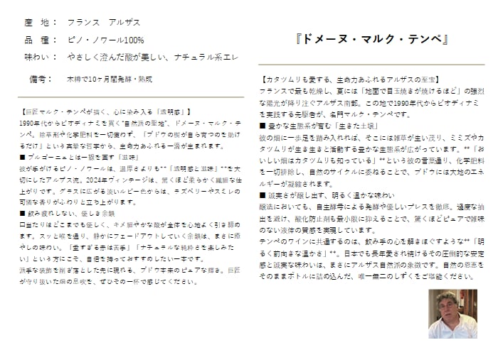 2005年頃から日本で人気を博し続ける、“ジャポン大好きビオディナミの巨匠”『ドメーヌ・マルク・テンペ』。