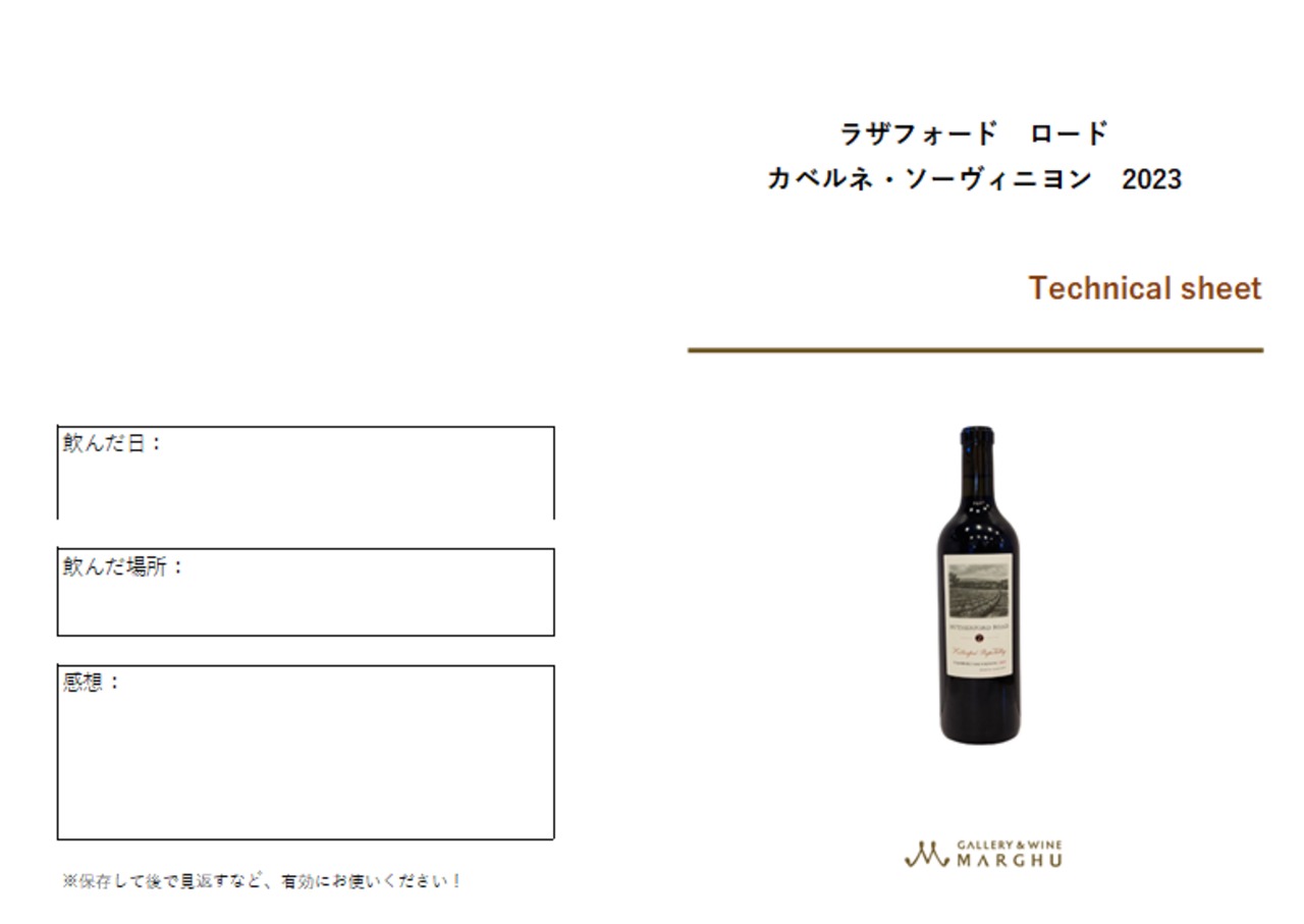 **マーグオリジナルのワイン説明書(テクニカルシート)**をお付けしています。