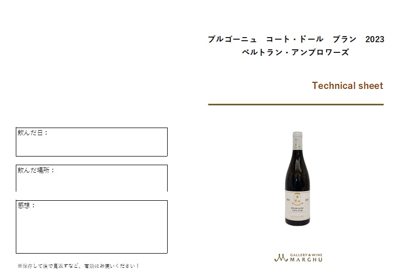 **マーグオリジナルのワイン説明書(テクニカルシート)**をお付けしています。