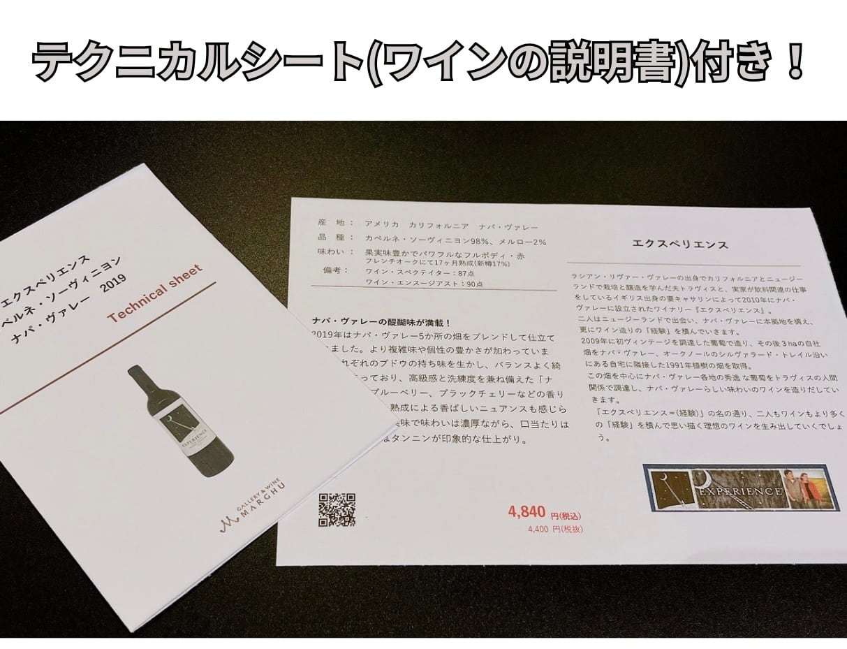 全てのワインにテクニカルシート(ワインの説明書)付き!