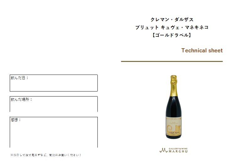 マーグではご購入頂いたワインをより美味しく楽しんで頂きたいと全てにテクニカルシートをお付けしております。