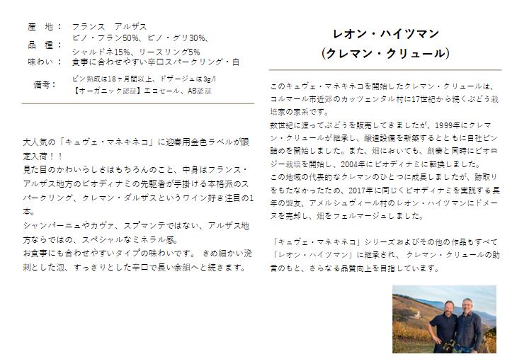 大人気の「キュヴェ・マネキネコ」に迎春用金色ラベルが限定入荷!!