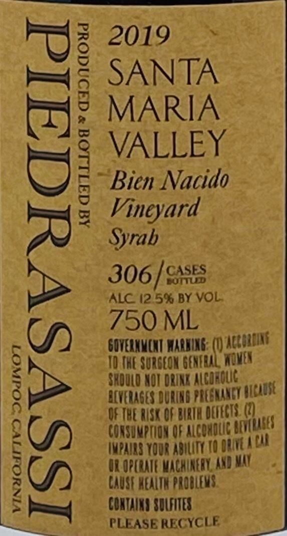 ピエドラサッシ シラー ビエン・ナシード・ヴィンヤード 2019
