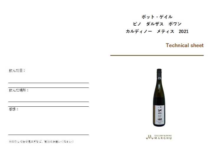 マーグではご購入頂いたワインをより美味しく楽しんで頂きたいと全てにテクニカルシートをお付けしております。